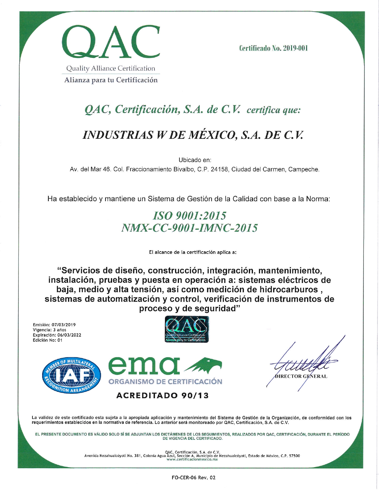 Certificados de calidad - ISO 9001:2015.